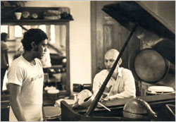 In 1970, Pandit Das received a Whitney Fellowship to teach Indian dance at the University of Maryland. With this entrée to the West, he began forging his own path as a pioneer bringing kathak and its rich cultural heritage to America. In 1971, he was invited by Ustad Ali Akbar Khan to join the Ali Akbar College of Music (AACM), where he established a rigorous dance program. Ali Akbar Khansahib’s college supported the development of another abundant period for Indian classical arts–this time, based in the US. During its heyday, the Ali Akbar College of Music sponsored several Indian artists of great renown, including Pt. Nikhil Bannerjee, Smt. Lakshmi Shankar, Pt. Shankar Ghosh, Ust. Alla Rakha, Pt. G.S. Sachdev, Pt. Dhyanesh Khan, Pt. Aashish Khan, Ust. Zakir Hussain, Pt. Swapan Chaudhuri, and others. Pandit Das was tremendously inspired by Ali Akbar Khansahib’s musical genius and created several choreographed works set to Khansahib’s music. Khansahib’s senior American disciples, particularly Peter van Gelder, George Ruckert, James Pomerantz, and Chris Ris, accompanied countless solo performances and dance productions. Dr. George Ruckert composed the music for many productions, including Gold Rush and Sita Haran. Decades later, Dr. Ruckert’s teaching inspired doctoral student Sarah Morelli to study with Ali Akbar Khansahib and Pandit Das, which led to the publication of A Guru’s Journey, her comprehensive book on Pandit Das’s development of the California Gharana of kathak. Today as a principal artist at Leela and professor of Ethnomusicology at the University of Denver, Dr. Sarah Morelli continues to nurture the musical sensibilities of the California Gharana, profoundly influenced by Khansahib’s music.